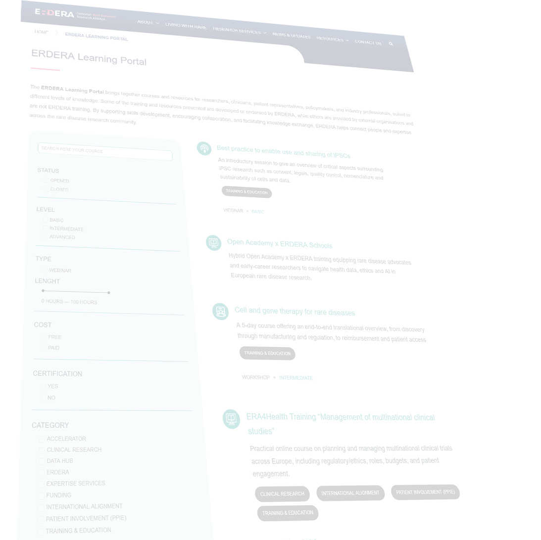 ERDERA brings under one roof a broad range of high-value services, resources and cross-disciplinary expertise to support rare disease research projects across Europe, from planning and design to efficient execution.