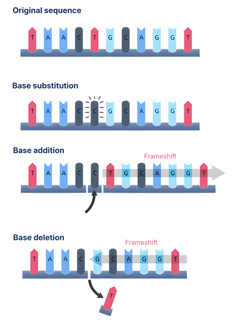 A single “letter” in the DNA is changed, which can stop a gene from making a functional protein. E.g.: Sickle cell disease.