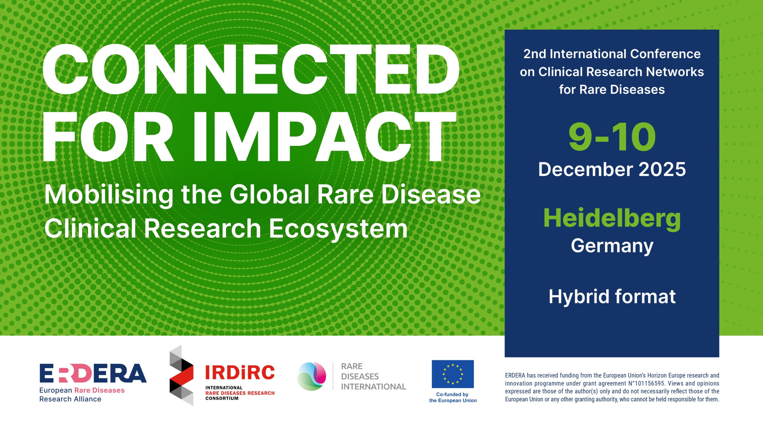 ERDERA – the European Rare Diseases Research Alliance – is pleased to announce the upcoming 2nd International Conference on Clinical Research Networks (CRNs) for Rare Diseases, co-organised in collaboration with Rare Disease International and the International Rare Diseases Research Consortium (IRDiRC).