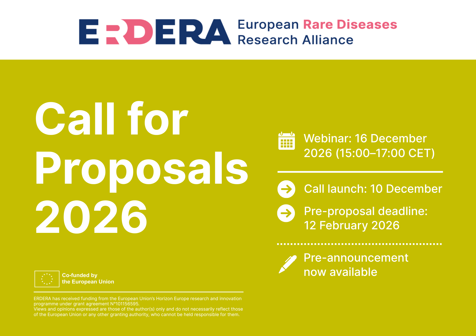 The session will also cover how ERDERA’s services and networks can strengthen proposals. A short presentation will introduce ERDERA and its hubs, including how the Clinical Research Network enhances diagnostic pathways and trial readiness by linking expert centres and harmonising procedures, the Data Services Hub supports secure, FAIR data sharing and analysis, and the Expertise Services Hub offers practical guidance on study design, regulatory pathways and methods. A dedicated segment on patient engagement will explain how meaningful PPIE is embedded throughout the call—from co‑defining priorities to governance and reporting—so that projects respond to patient‑need and drive real‑world impact.
